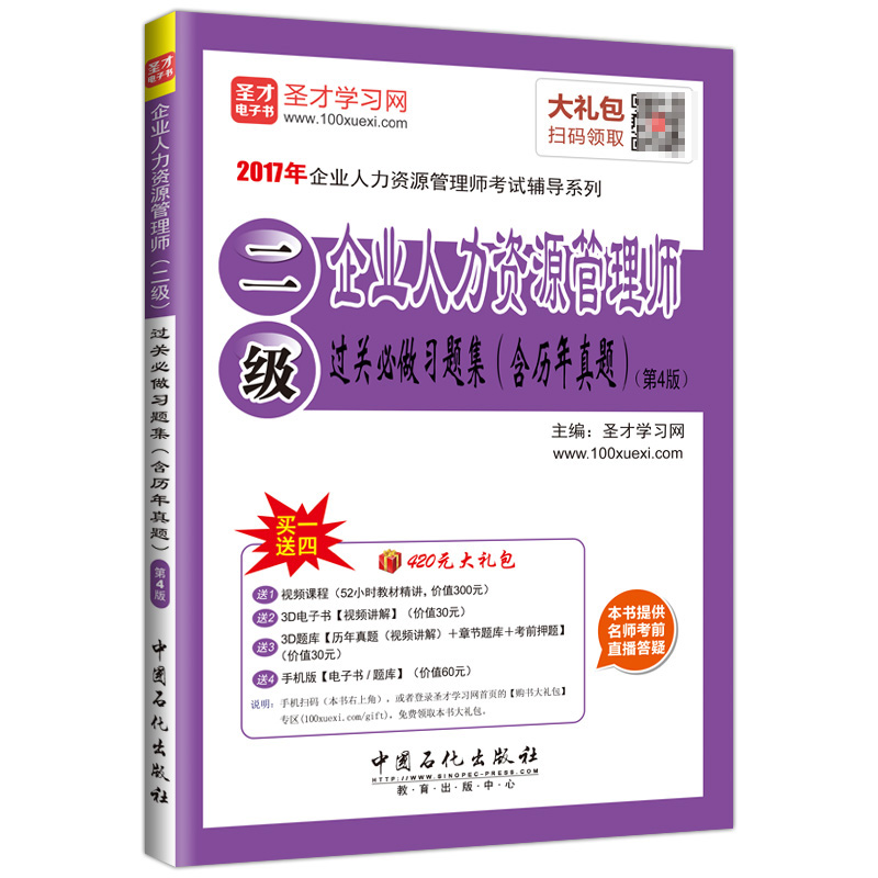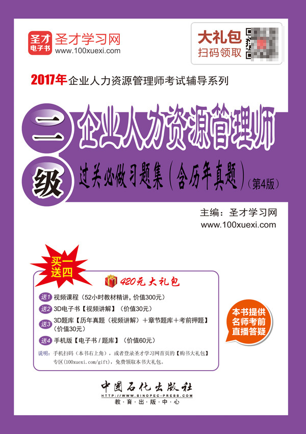 圣才学习网(www.100xuexi.com)提供企业人力资源管理师等各种管理类考试辅导方案【视频课程、3D电子书、3D题库等】。购书享受大礼包增值服务【300元视频课程+30元3D电子书+30元3D题库+60元手机版电子书/题库】。本书提供名师考前直播答疑,手机电脑均可观看,直播答疑在考前推出(具体时间见网站公告)。手机扫码(本书封面的二维码),或者登录圣才学习网首页的【购书大礼包】专区(www.100xuexi.com/gift),免费领取本书大礼包。