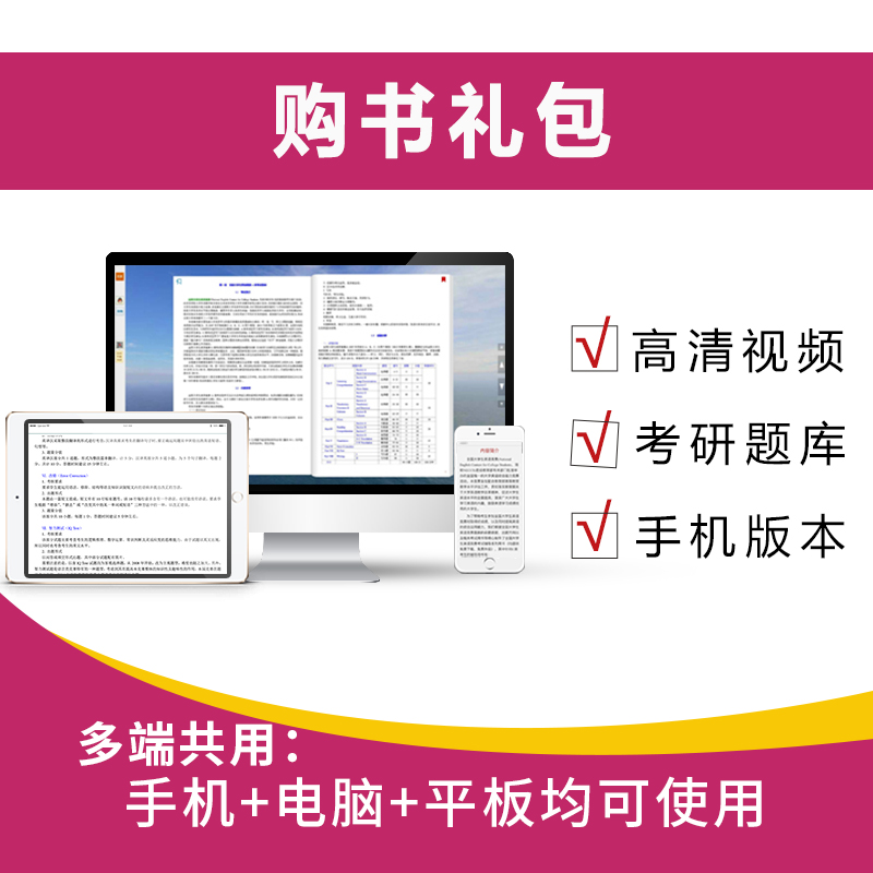 购买本书享受大礼包增值服务:手机扫码(本书封面的二维码)免费领取本书大礼包。具体包括:①视频课程(4小时,价值100元);②本书3D电子书(价值30元);③3D题库【名校考研真题(视频讲解)+经典教材课后习题+章节题库+模拟试题】(价值30元);④手机版【电子书/题库】(价值60元)。