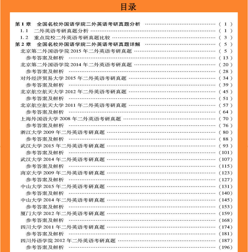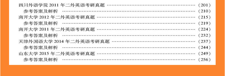 本书是详解全国名校外国语专业考研科目“二外英语”历年真题的复习资料。它根据众多院校“二外英语”试题的结构和难易程度,从全国14所院校“二外英语”历年试题中挑选了20套近年试题,并提供了详细的参考答案及解析。