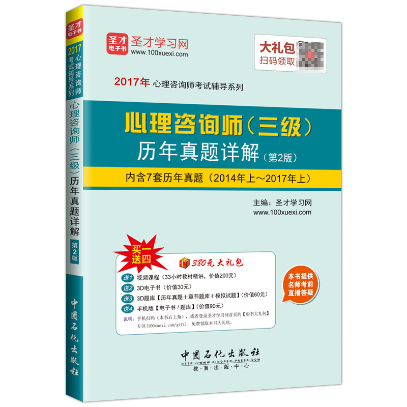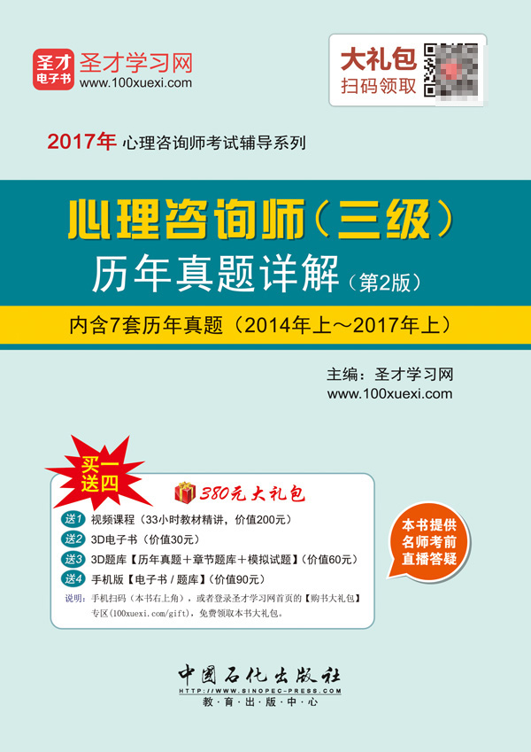 圣才学习网(www.100xuexi.com)提供心理咨询师国家职业资格等各种心理类考试辅导方案【视频课程、3D电子书、3D题库等】。购书享受大礼包增值服务【200元视频课程+30元3D电子书+60元3D题库+90元手机版电子书题库)】。本书提供名师考前直播答疑,手机电脑均可观看,直播答疑在考前推出(具体时间见网站公告)。手机扫码(本书封面的二维码),或者登录圣才学习网首页的【购书大礼包】专区(www.100xuexi.com/gift),免费领取本书大礼包。