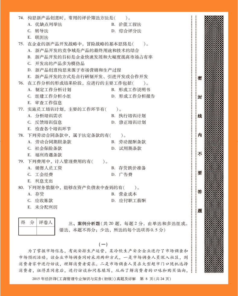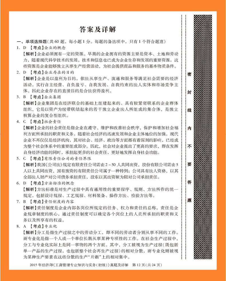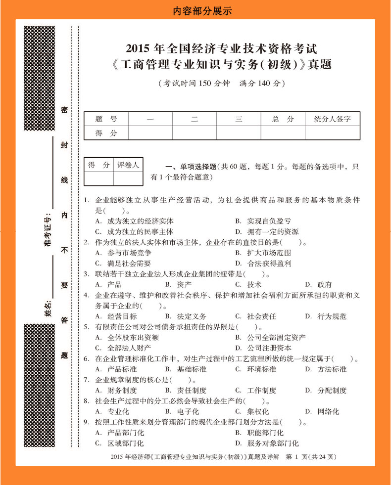 2015年经济师《工商管理专业知识与实务(初级)》真题及详解