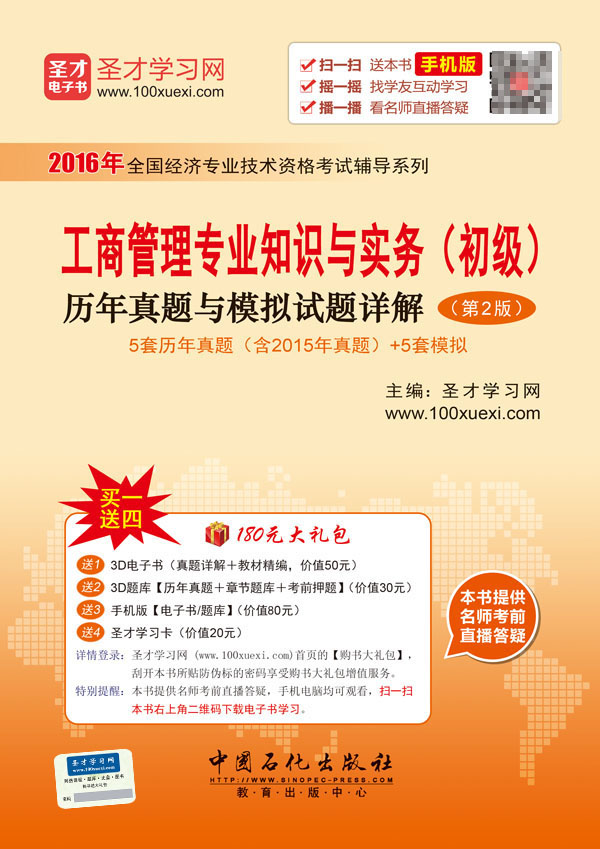 圣才学习网(www.100xuexi.com)提供经济师等各种职称资格考试辅导方案【网络课程、3D电子书、3D题库等】(详细介绍参见本书书前插页)。购书享受大礼包增值服务【50元3D电子书+30元3D题库+80元手机版电子书/题库+20元圣才学习卡】。扫一扫本书封面的二维码,可免费下载本书手机版;摇一摇本书手机版,可找到所有学习本书的学友,交友学习两不误;本书提供名师考前直播答疑,手机电脑均可观看,直播答疑在考前推出(具体时间见网站公告)。