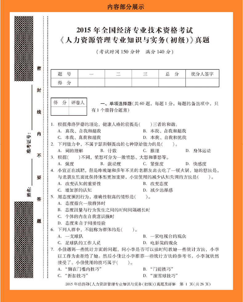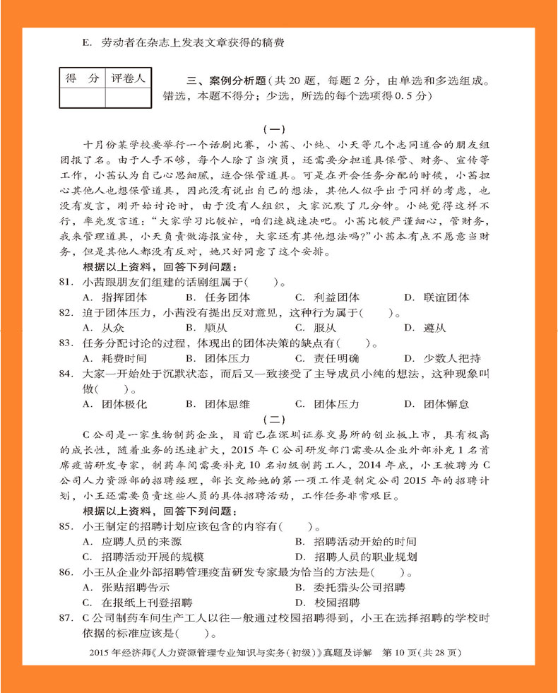 2015年经济师《人力资源管理专业知识与实务(初级)》真题及详解