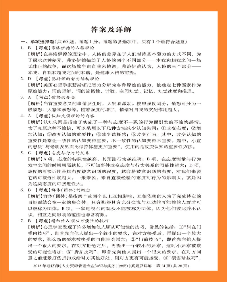 2014年经济师《人力资源管理专业知识与实务(初级)》真题及详解