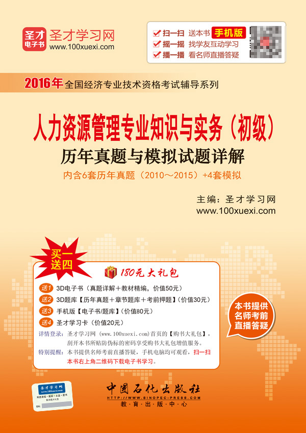 圣才学习网(www.100xuexi.com)提供经济师等各种职称资格考试辅导方案【网络课程、3D电子书、3D题库等】(详细介绍参见本书书前插页)。购书享受大礼包增值服务【50元3D电子书+30元3D题库+80元手机版电子书/题库+20元圣才学习卡】。扫一扫本书封面的二维码,可免费下载本书手机版;摇一摇本书手机版,可找到所有学习本书的学友,交友学习两不误;本书提供名师考前直播答疑,手机电脑均可观看,直播答疑在考前推出(具体时间见网站公告)。