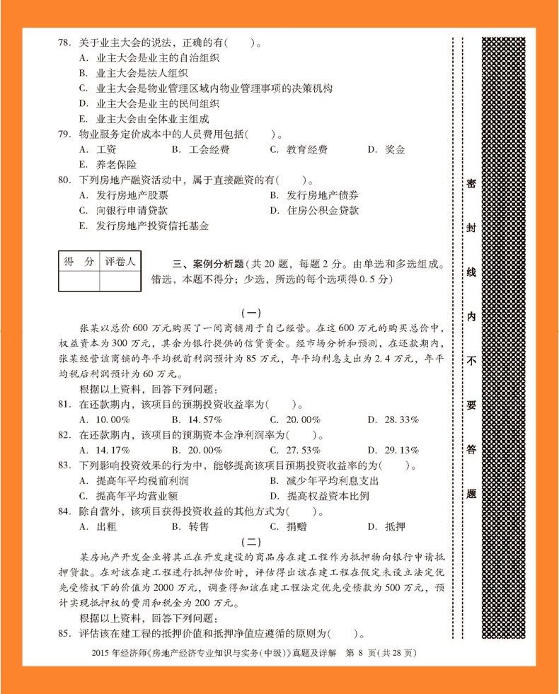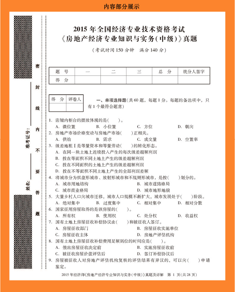 2015年经济师《房地产经济专业知识与实务(中级)》真题及详解