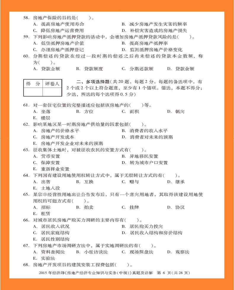 2012年经济师《房地产经济专业知识与实务(中级)》真题及详解