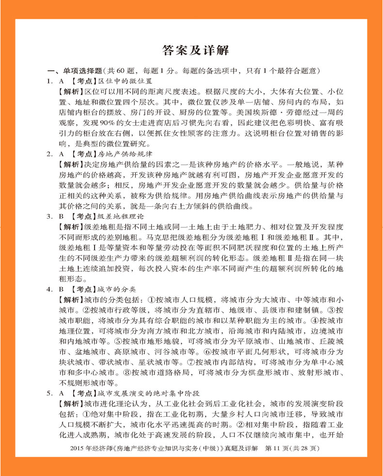 2011年经济师《房地产经济专业知识与实务(中级)》真题及详解