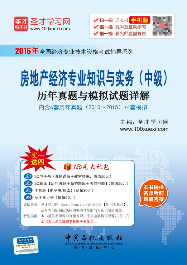 圣才学习网(www.100xuexi.com)提供经济师等各种职称资格考试辅导方案【网络课程、3D电子书、3D题库等】(详细介绍参见本书书前插页)。购书享受大礼包增值服务【50元3D电子书+30元3D题库+80元手机版电子书/题库+20元圣才学习卡】。扫一扫本书封面的二维码,可免费下载本书手机版;摇一摇本书手机版,可找到所有学习本书的学友,交友学习两不误;本书提供名师考前直播答疑,手机电脑均可观看,直播答疑在考前推出(具体时间见网站公告)。