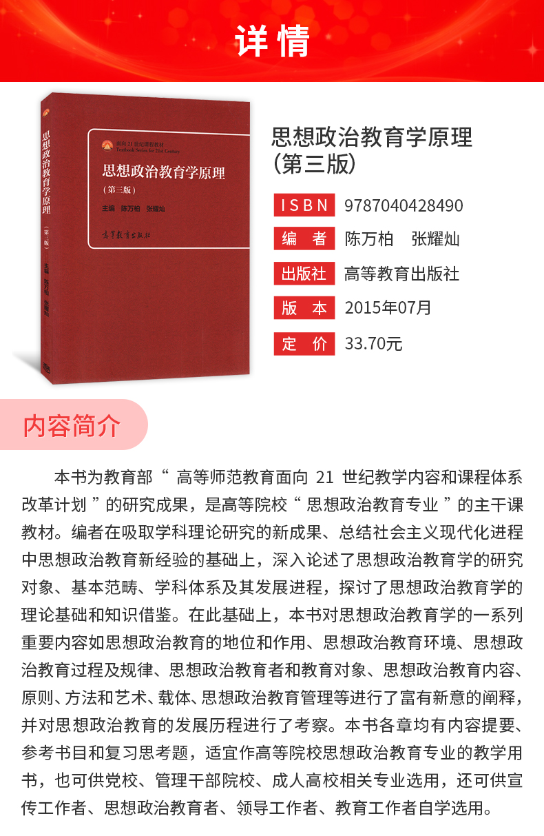 陈万柏《思想政治教育学原理》(第3版)教材(高等教育出版社)