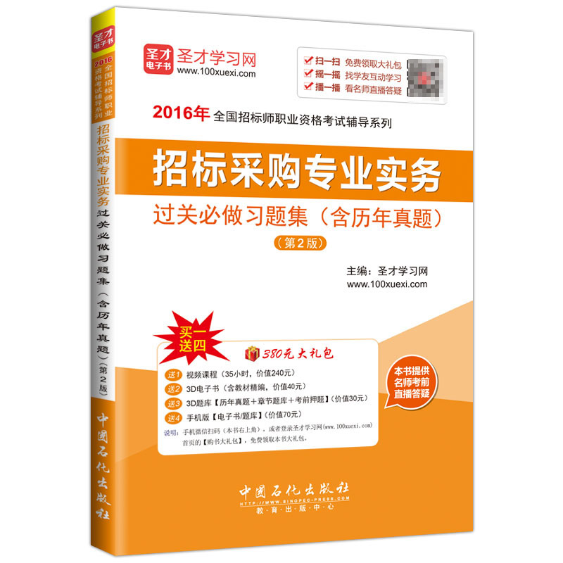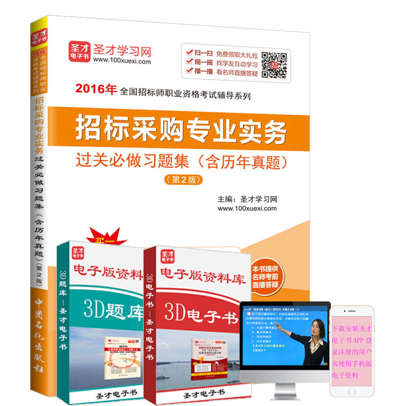 圣才学习网(www.100xuexi.com)提供招标师等各种工程类考试辅导方案【网络课程、3D电子书、3D题库等】(详细介绍参见本书书前彩页)。购书享受大礼包增值服务【240元视频课程+40元3D电子书+30元3D题库+70元手机版电子书/题库】。本书提供名师考前直播答疑,手机电脑均可观看,直播答疑在考前推出(具体时间见网站公告)。手机微信扫码(本书封面的二维码),或者登录圣才学习网 (www.100xuexi.com)首页的【购书大礼包】,免费下载本书大礼包。