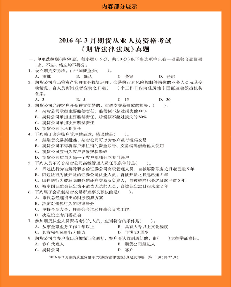 期货从业资格考试《期货法律法规》模拟试题及详解(一)