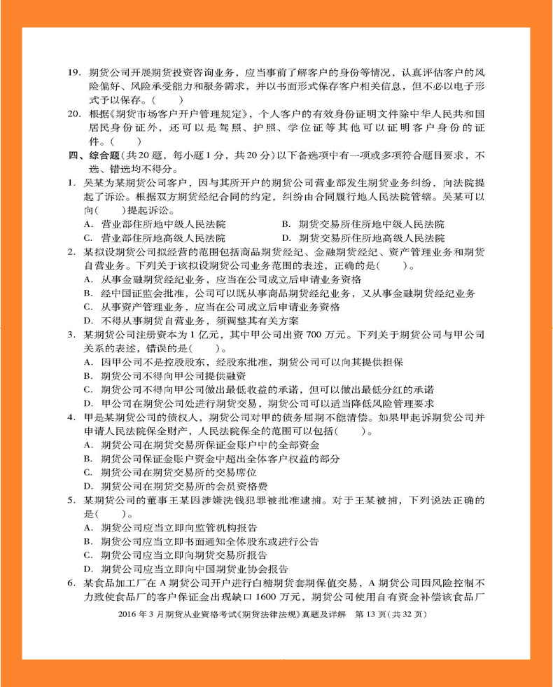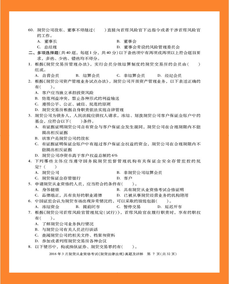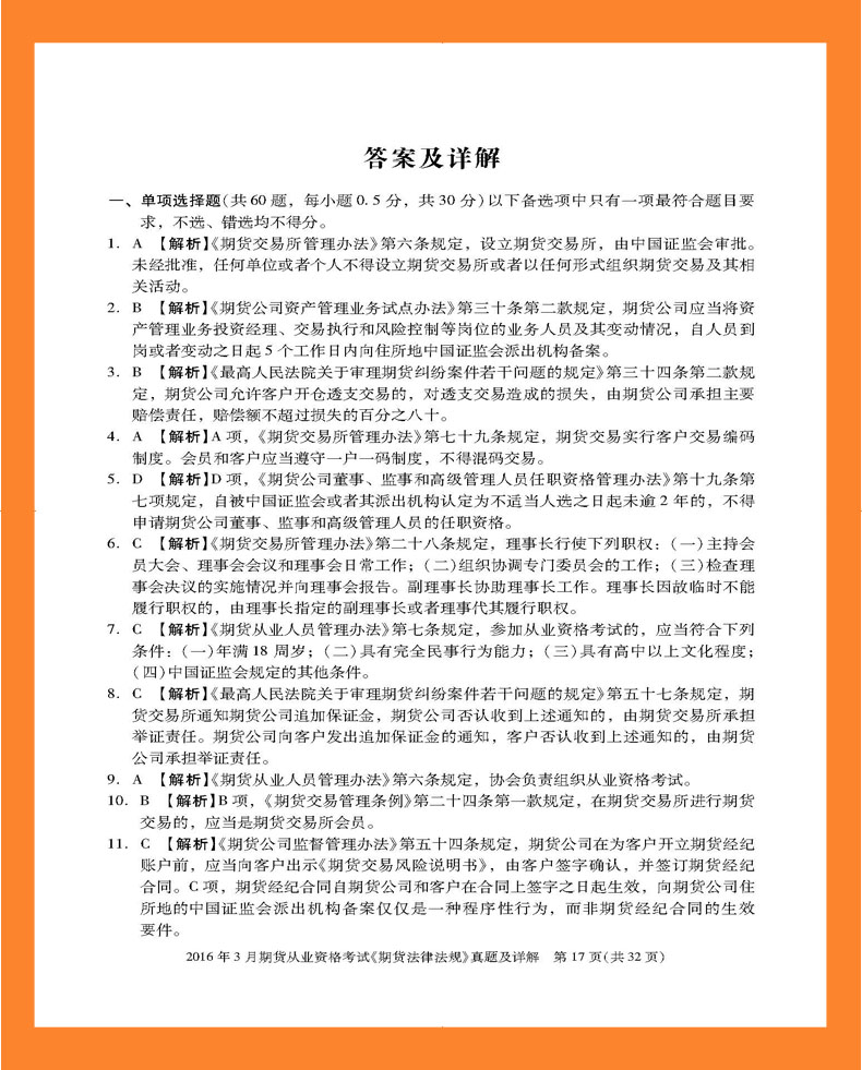 期货从业资格考试《期货法律法规》模拟试题及详解(二)