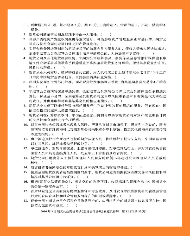 2016年3月期货从业资格考试《期货法律法规》真题及详解