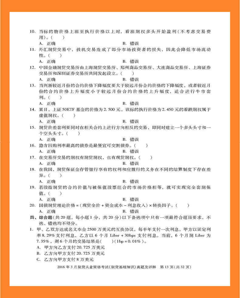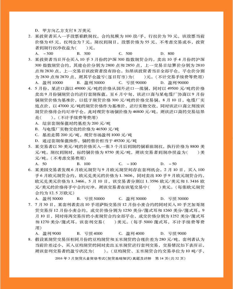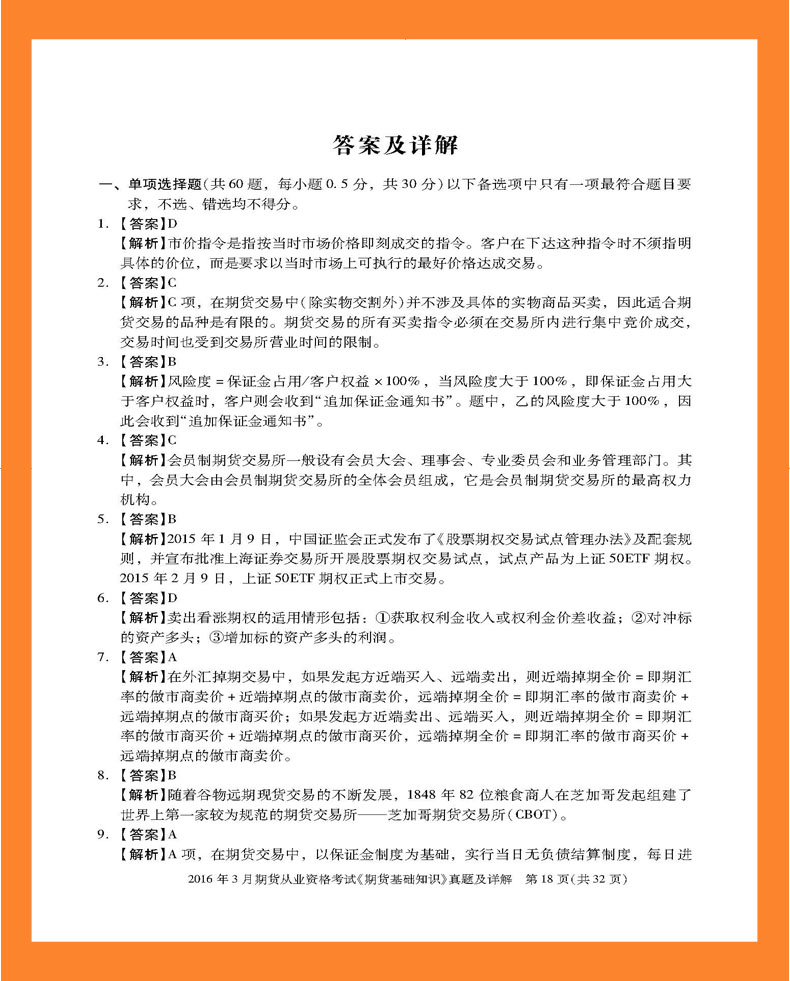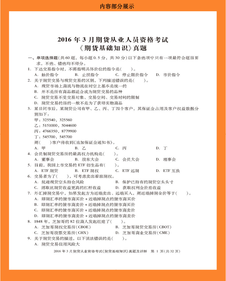 2016年3月期货从业资格考试《期货基础知识》真题及详解