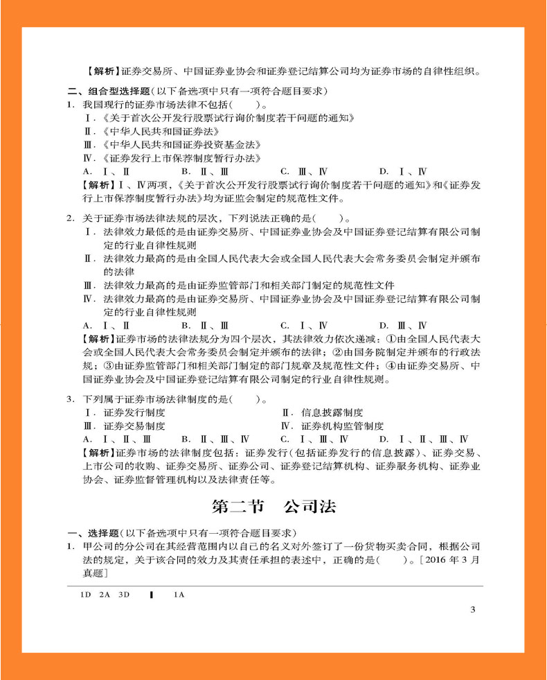 3.证券市场基本法律法规历年真题详解与考前押题试卷