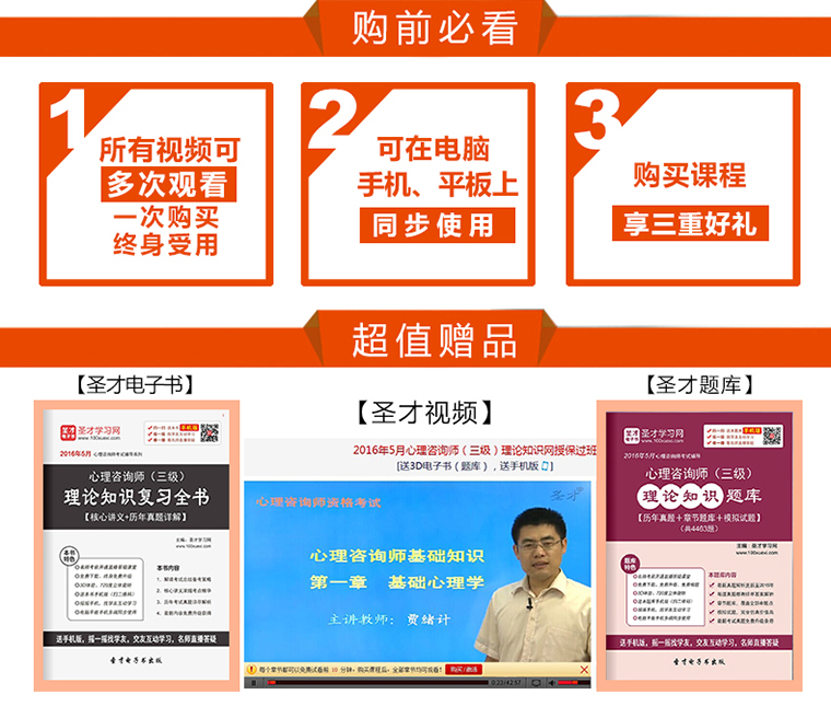 2016年心理咨询师二级/三级考试 VIP套餐 视频+真题+模拟题+讲义二级/三级任选