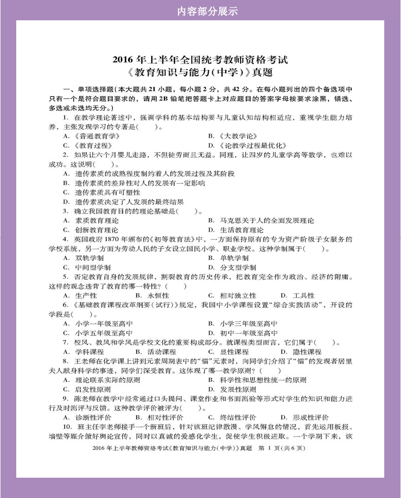为了帮助考生顺利通过全国统考教师资格考试,由长期从事全国统考教师资格考试研究的教学专家组根据2016年考试大纲和权威教材精心编写了全国统考教师资格考试辅导系列: