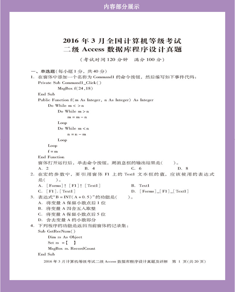 4.二级Access数据库程序设计历年真题与模拟试题详解