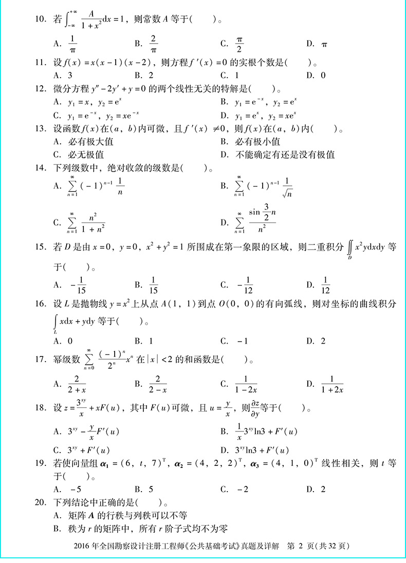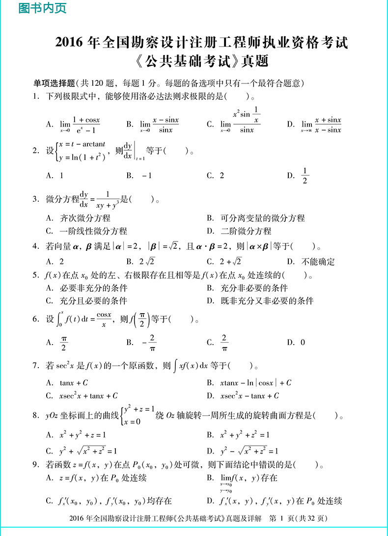 2016年全国勘察设计注册工程师《公共基础考试》真题及详解(共32页)