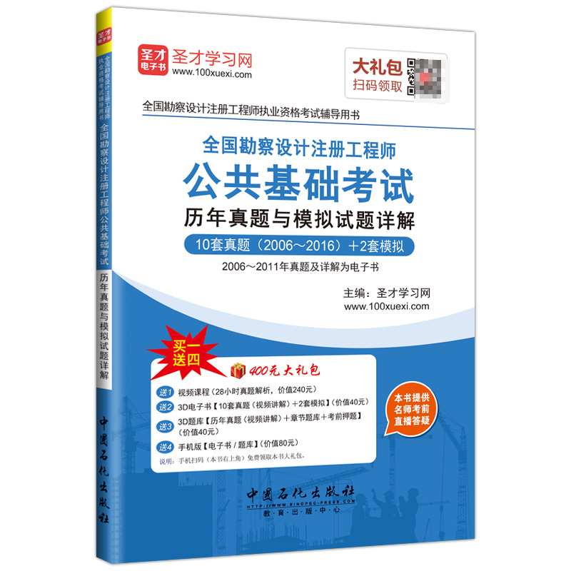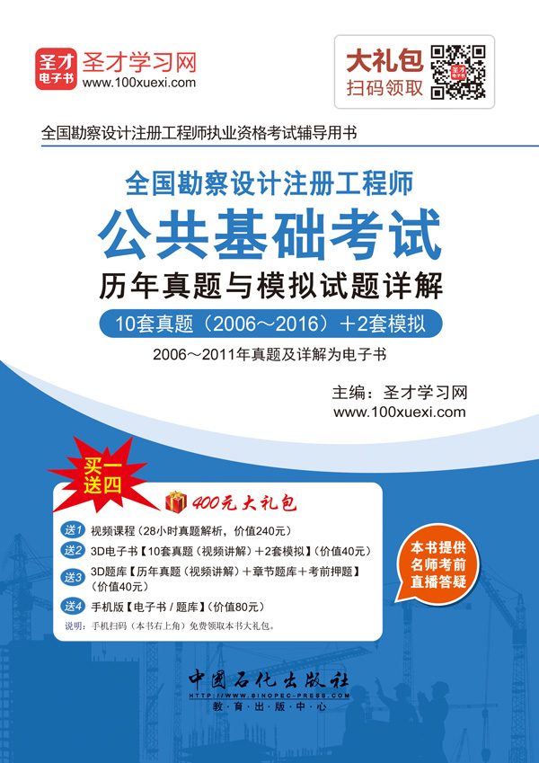 圣才学习网(www.100xuexi.com)提供全国勘察设计注册工程师等各种职称资格考试辅导方案【视频课程、3D电子书、3D题库等】。购书享受大礼包增值服务【240元视频课程+40元3D电子书+40元3D题库+80元手机版电子书/题库】。本书提供名师考前直播答疑,手机电脑均可观看,直播答疑在考前推出(具体时间见网站公告)。手机扫码(本书封面的二维码)免费领取本书大礼包。