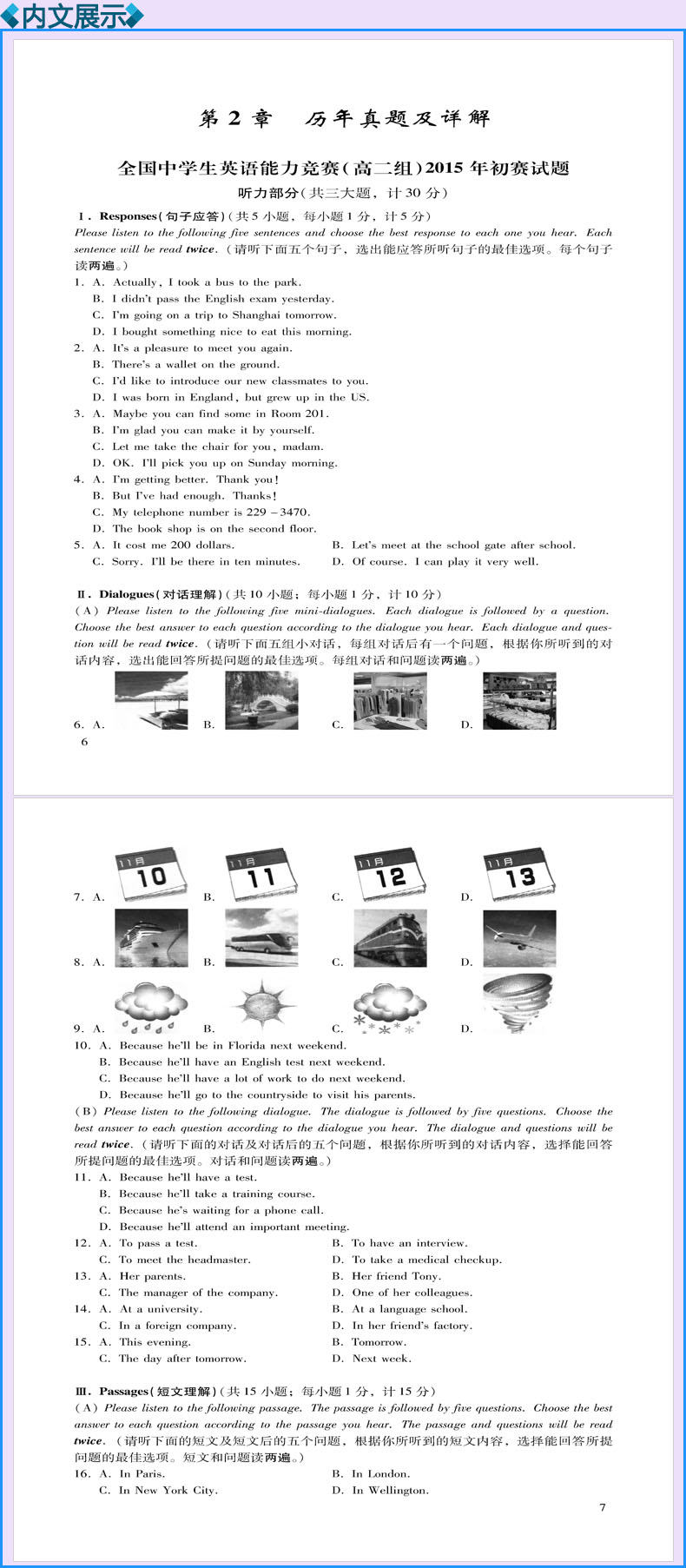 7.全国中学生英语能力竞赛(高一组)历年真题及模拟试题详解【赠高清视频+听力音频】