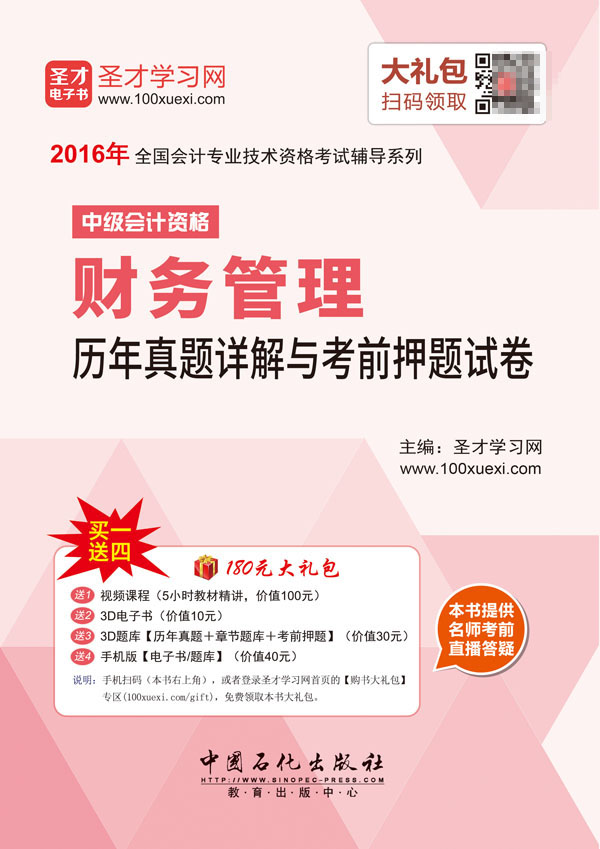 圣才学习网(www.100xuexi.com)提供全国会计专业技术资格考试辅导方案【视频课程、3D电子书、3D题库等】。购书享受大礼包增值服务【100元视频课程+10元3D电子书+30元3D题库+40元手机版电子书/题库】。本书提供名师考前直播答疑,手机电脑均可观看,直播答疑在考前推出(具体时间见网站公告)。手机扫码(本书封面的二维码),或者登录圣才学习网首页的【购书大礼包】专区(www.100xuexi.com/gift),免费领取本书大礼包。