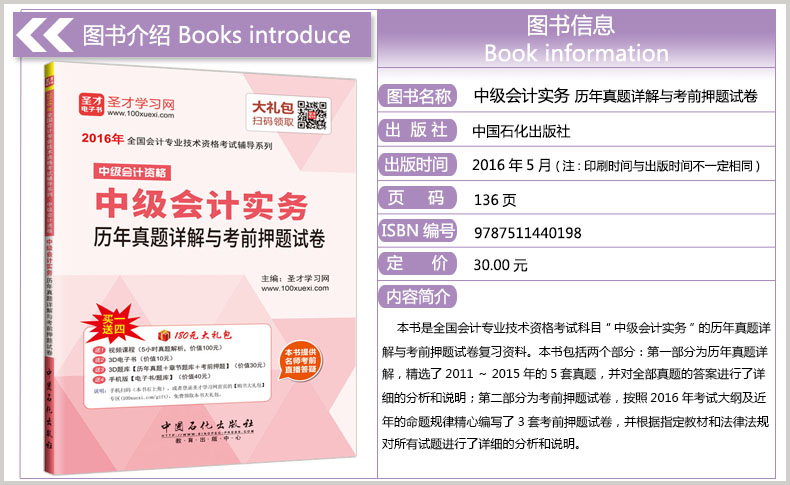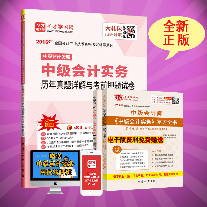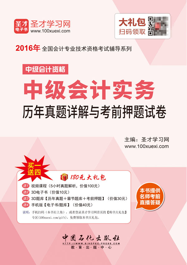 圣才学习网(www.100xuexi.com)提供全国会计专业技术资格考试辅导方案【视频课程、3D电子书、3D题库等】。购书享受大礼包增值服务【100元视频课程+10元3D电子书+30元3D题库+40元手机版电子书/题库】。本书提供名师考前直播答疑,手机电脑均可观看,直播答疑在考前推出(具体时间见网站公告)。手机扫码(本书封面的二维码),或者登录圣才学习网首页的【购书大礼包】专区 (www.100xuexi.com/gift),免费领取本书大礼包。