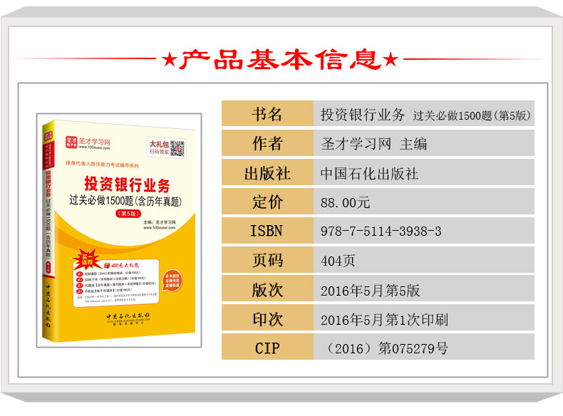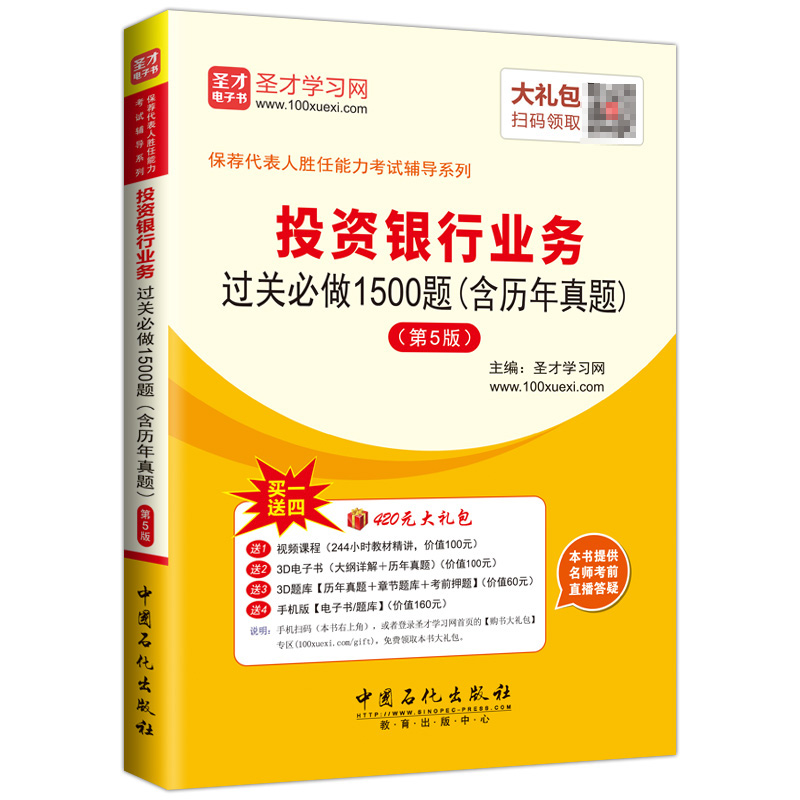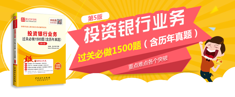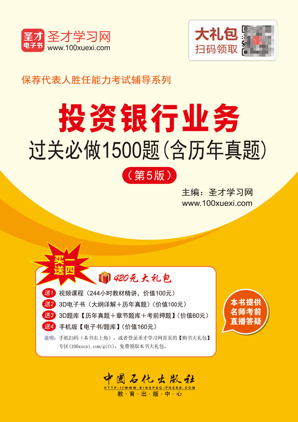 圣才学习网(www.100xuexi.com)提供保荐代表人胜任能力考试辅导方案【视频课程、3D电子书、3D题库等】。购书享受大礼包增值服务【100元视频课程+100元3D电子书+60元3D题库+160元手机版电子书/题库】。本书提供名师考前直播答疑,手机电脑均可观看,直播答疑在考前推出(具体时间见网站公告)。手机扫码(本书封面的二维码),或者登录圣才学习网首页的【购书大礼包】专区(www.100xuexi.com/gift),免费领取本书大礼包。