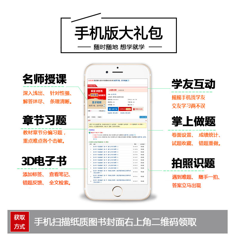 购买本书享受大礼包增值服务!手机扫码(本书封面的二维码),或者登录圣才学习网首页的【购书大礼包】专区(www.100xuexi.com/gift),免费领取本书大礼包。具体包括:①视频课程(244小时教材精讲,价值100元);②3D电子书(价值100元);③3D题库【历年真题+章节题库+考前押题】(价值60元);④手机版【电子书/题库】(价值160元)。本书提供名师考前直播答疑,手机电脑均可观看,直播答疑在考前推出(具体时间见网站公告)。