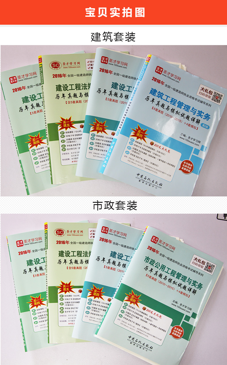 包邮 一建全套4本2016年全国一级建造师建筑工程 市政工程历年真题与模拟试题详解 赠送一建考试视频教材配套题库押题答案直播答疑