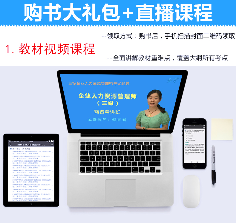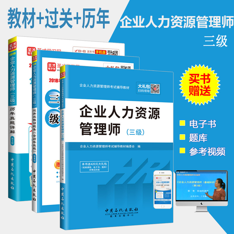 包邮 三本套装备考17年企业人力资源管理师三级教材+真题试卷第4版+过关习题集第6版 赠送全套高清视频课程题库押题电子书