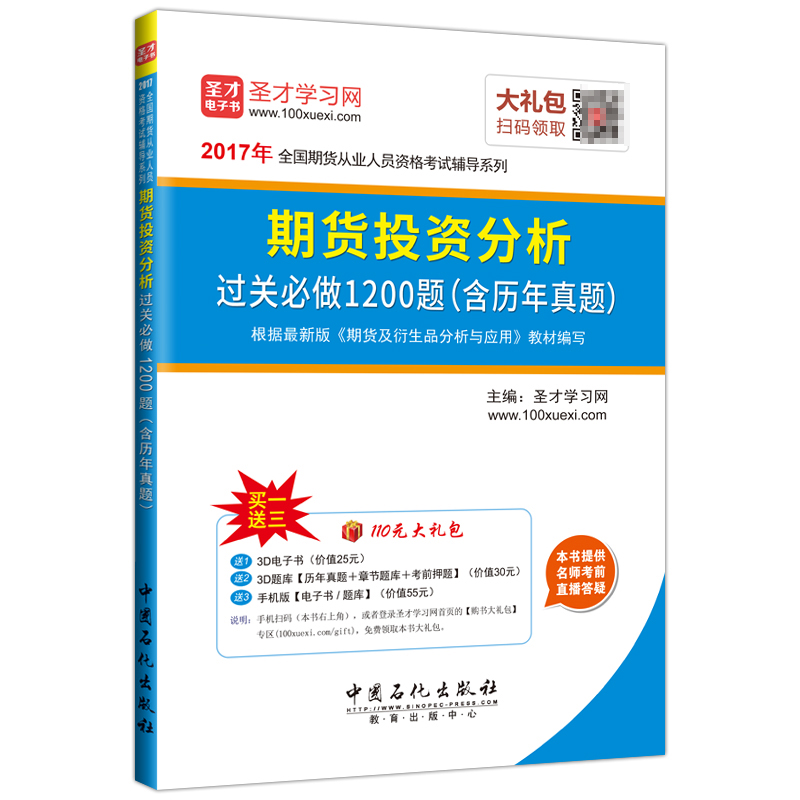 圣才学习网(www.100xuexi.com)提供全国期货从业人员资格考试辅导方案【视频课程、3D电子书、3D题库等】。购书享受大礼包增值服务【25元3D电子书+30元3D题库+55元手机版电子书/题库】。本书提供名师考前直播答疑,手机电脑均可观看,直播答疑在考前推出(具体时间见网站公告)。手机扫码(本书封面的二维码),或者登录圣才学习网首页的【购书大礼包】专区(www.100xuexi.com/gift),免费领取本书大礼包。