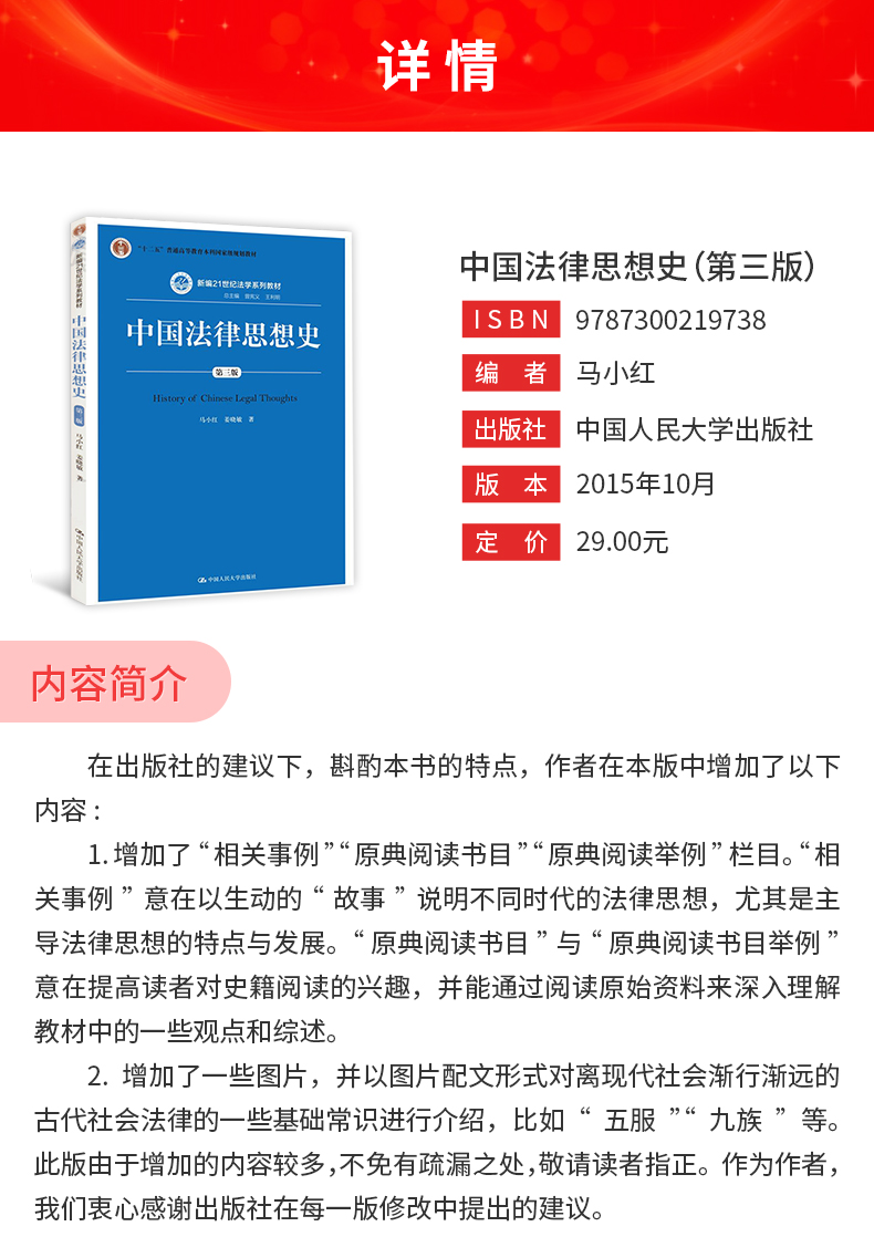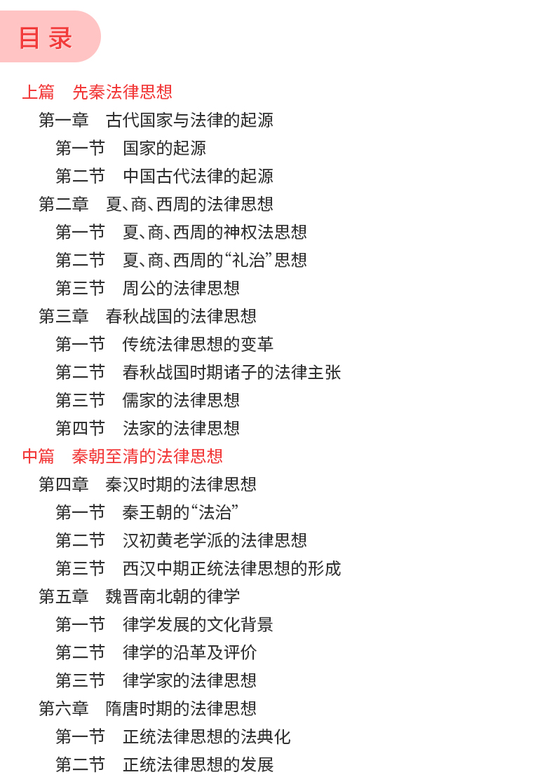 马小红《中国法律思想史》(第3版)教材(中国人民大学出版社)