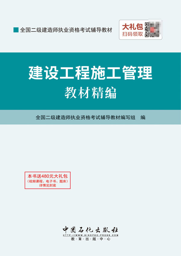圣才学习网(www.100xuexi.com)提供二级建造师等各种工程类考试辅导方案【视频课程、3D电子书、3D题库等】。购书享受大礼包增值服务【360元视频课程+30元3D电子书+30元3D题库+60元手机版电子书/题库】。本书提供名师考前直播答疑,手机电脑均可观看,直播答疑在考前推出(具体时间见网站公告)。手机扫码(本书封面的二维码),或者登录圣才学习网首页的【购书大礼包】专区(www.100xuexi.com/gift),免费领取本书大礼包。
