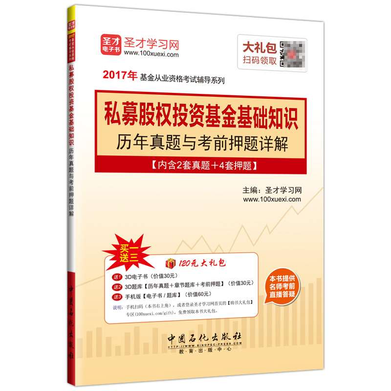 圣才学习网(www.100xuexi.com)提供基金从业资格考试等各种考试辅导方案【视频课程、3D电子书、3D题库等】。购书享受大礼包增值服务【30元3D电子书+30元3D题库+60元手机版电子书/题库】。本书提供名师考前直播答疑,手机电脑均可观看,直播答疑在考前推出(具体时间见网站公告)。手机扫码(本书封面的二维码),或者登录圣才学习网首页的【购书大礼包】专区(www.100xuexi.com/gift),免费领取本书大礼包。