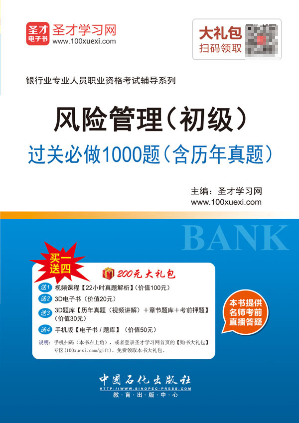 圣才学习网(www.100xuexi.com)提供银行业专业人员职业资格考试辅导方案【视频课程、3D电子书、3D题库等】。购书享受大礼包增值服务【100元视频课程+20元3D电子书+30元3D题库+50元手机版电子书/题库】。本书提供名师考前直播答疑,手机电脑均可观看,直播答疑在考前推出(具体时间见网站公告)。手机扫码(本书封面的二维码),或者登录圣才学习网首页的【购书大礼包】专区(www.100xuexi.com/gift),免费领取本书大礼包。