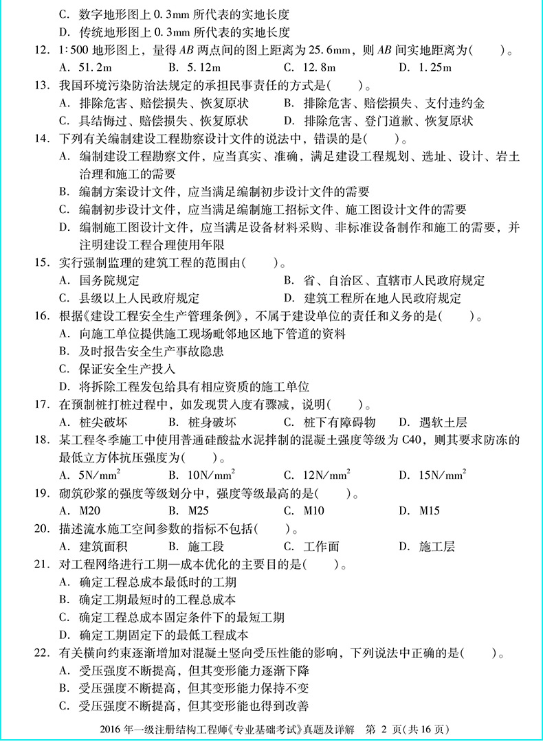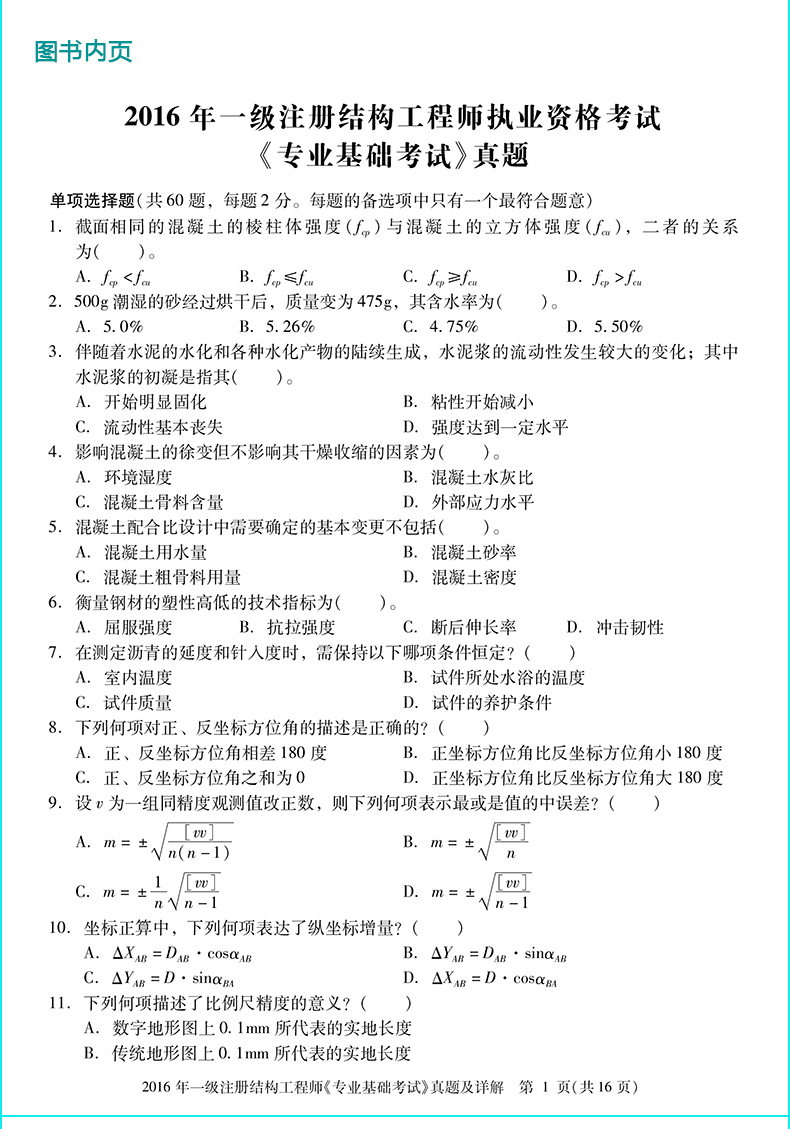 2016年一级注册结构工程师《专业基础考试》真题及详解(共16页)