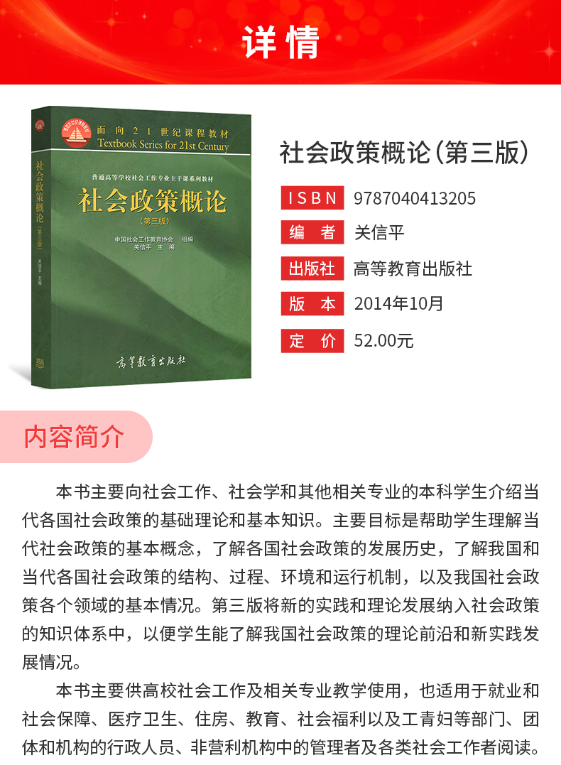 关信平《社会政策概论》(第3版)教材(高等教育出版社)