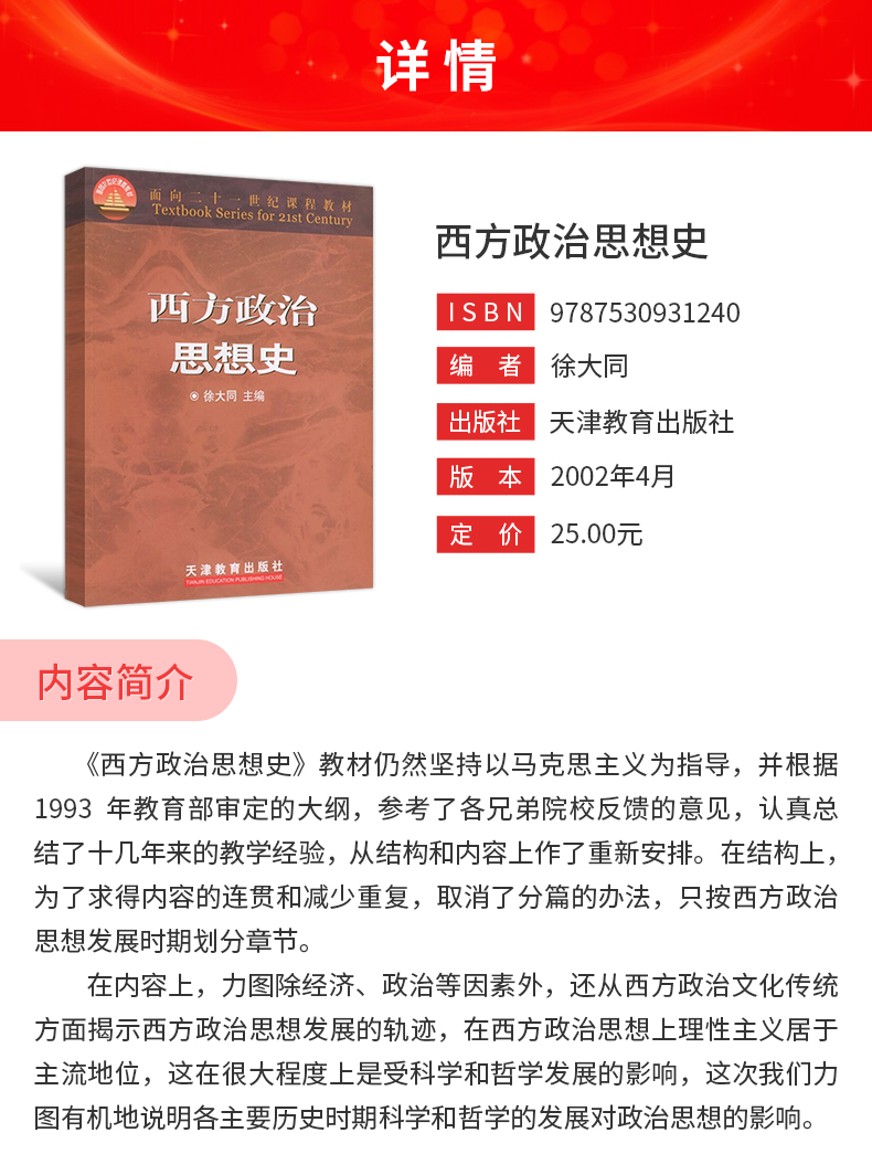 徐大同《西方政治思想史》教材(天津教育出版社)
