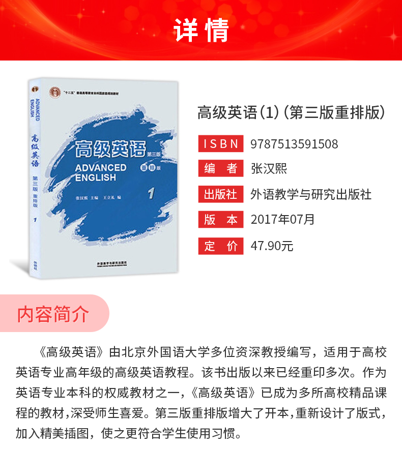 张汉熙《高级英语(1)》(第3版重排版)教材(外语教学与研究出版社)