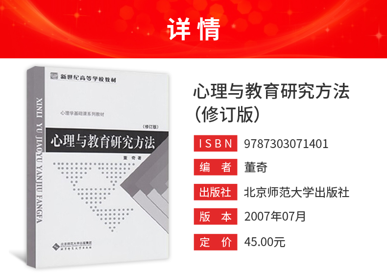 董奇《心理与教育研究方法》(修订版)教材(北京师范大学出版社)