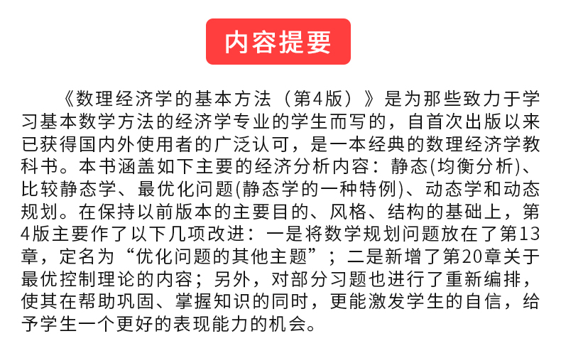 蒋中一《数理经济学的基本方法》(第4版)教材(北京大学出版社)
