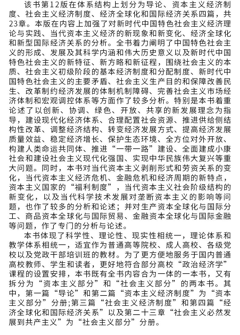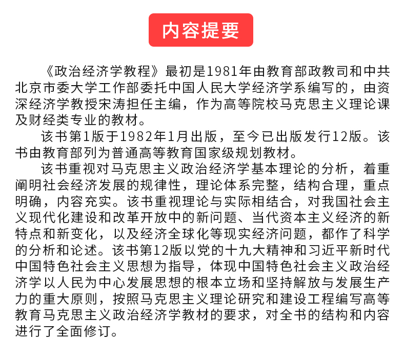 宋涛《政治经济学教程》(第12版)教材(中国人民大学出版社)