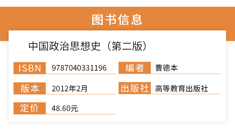 曹德本《中国政治思想史》(第2版)教材(高等教育出版社)