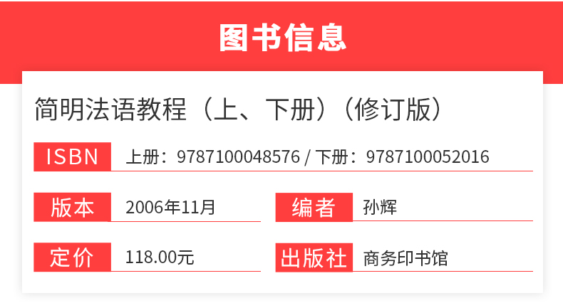 孙辉《简明法语教程(上、下册)》(修订版)教材(商务印书馆)
