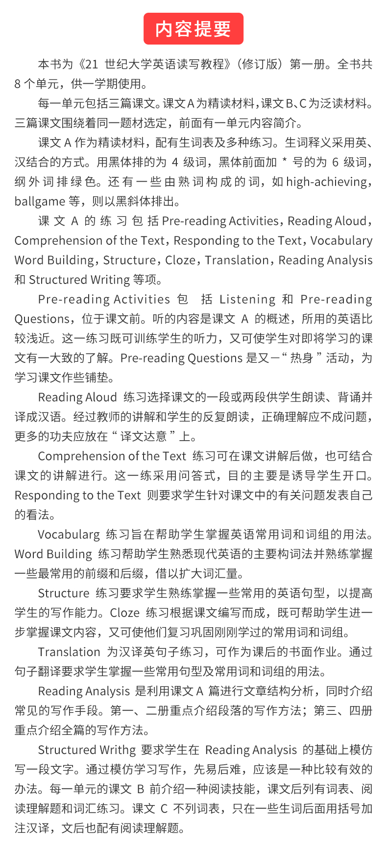 翟象俊《21世纪大学英语读写教程(1)》(修订版)教材(复旦大学出版社)