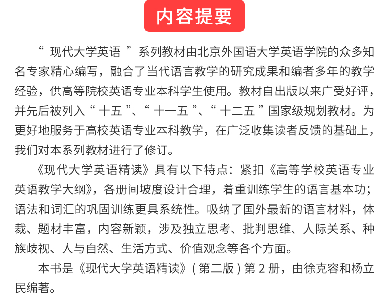 杨立民《现代大学英语精读(2)》(第2版)教材(外语教学与研究出版社)