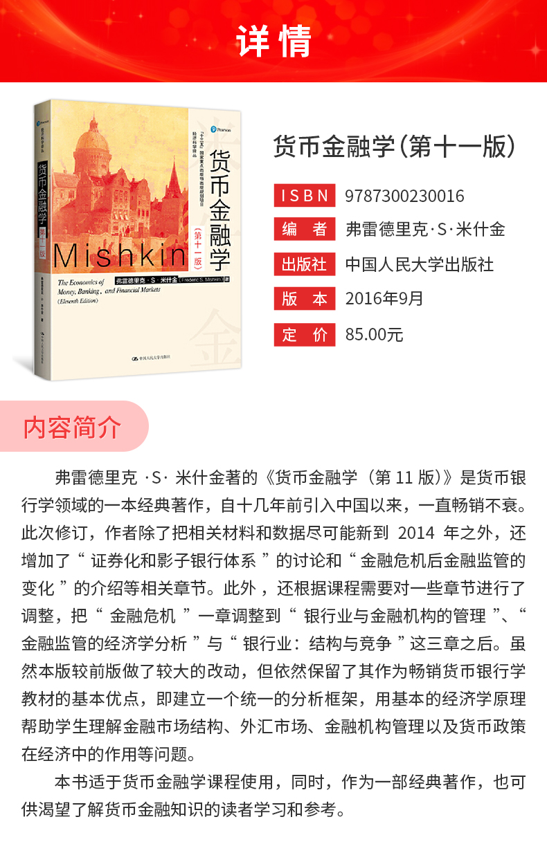 米什金《货币金融学》(第11版)教材(中国人民大学出版社)