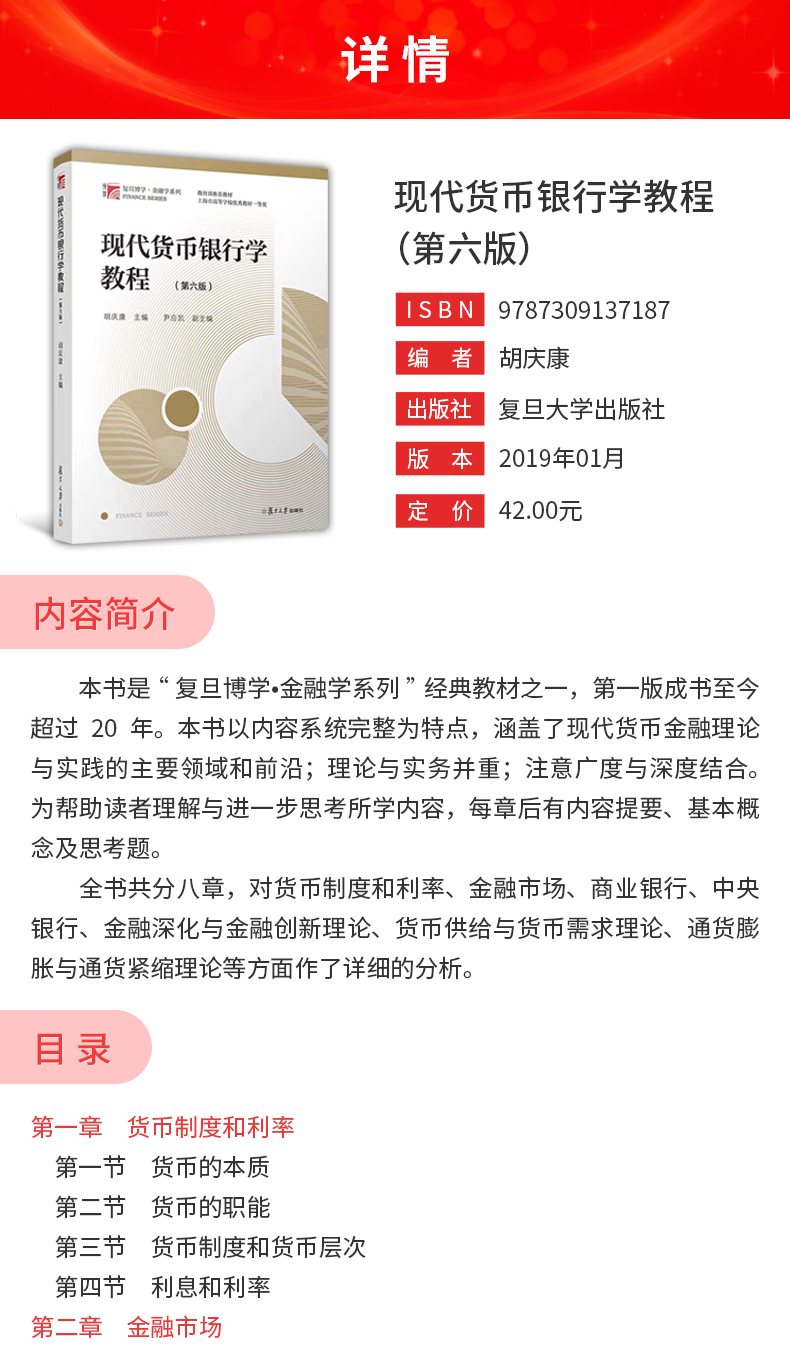 胡庆康《现代货币银行学教程》(第6版)教材(复旦大学出版社)